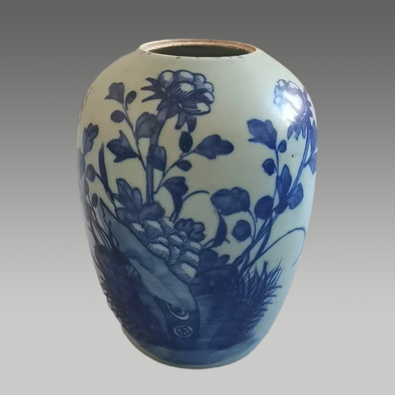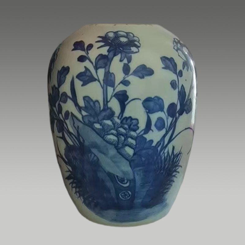 这只瓷罐釉色温润,青花纹饰浓淡相宜,牡丹与湖石相映成趣,笔意灵动,尽显清雅古韵