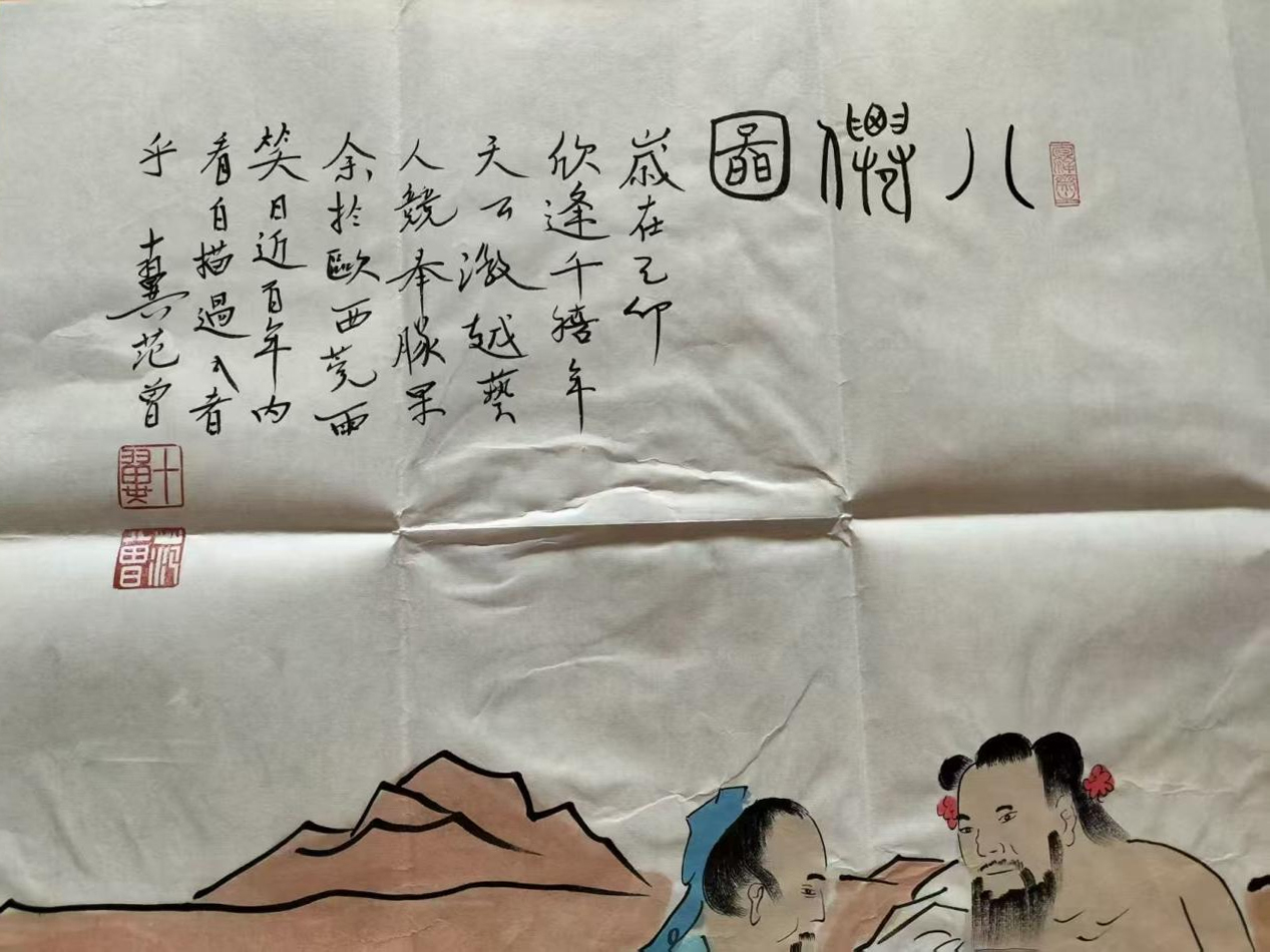 此作绘八仙于山石间,线条劲挺,设色明快,人物神态鲜活生动,笔墨间尽显简笔人物之妙,既得传统意趣