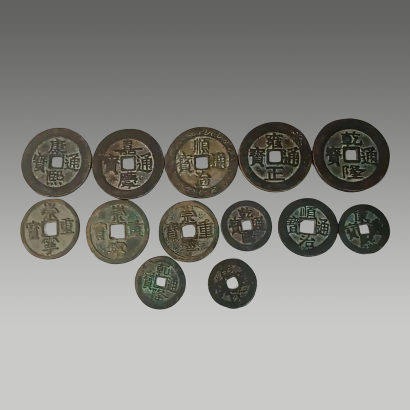 这套古钱币藏品品类丰富,涵盖多类年号钱与吉语钱,包浆醇厚自然,形制规整,字迹清晰,品相完好