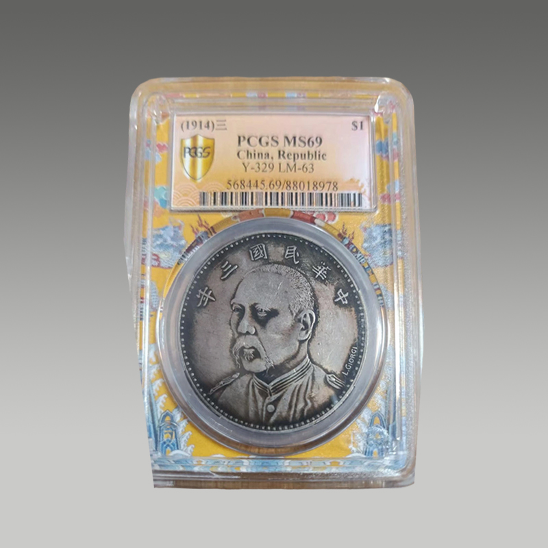 签字留名,币面人像威严,嘉禾纹饱满。PCGS MS69高分加持,包浆温润,品相卓绝