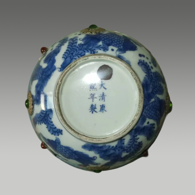 青花雅韵映瓷心,鎏金镶宝添华贵,彩珠点缀灵动生姿,纹饰精巧,工艺卓绝,器型端庄,尽显东方美学与匠心神韵