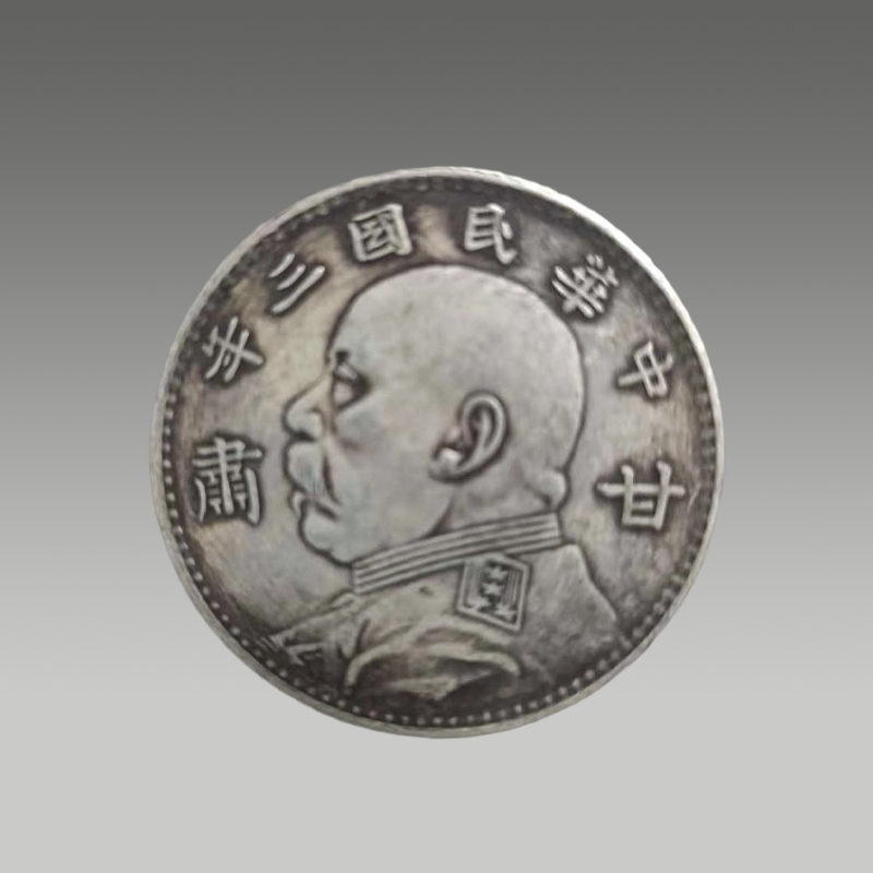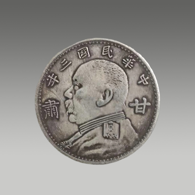 这枚银币雕工苍劲,袁像神态威严,“甘肃”二字笔力沉雄,银质包浆温润厚重,尽显机制币的工艺精髓