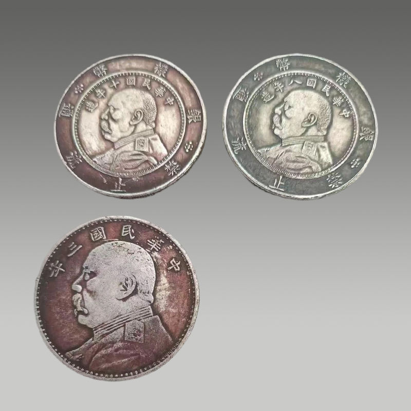 三枚袁大头样币,铸工精湛,人像传神,包浆醇厚,版式珍稀,边齿规整,品相上乘,尽显钱币神韵