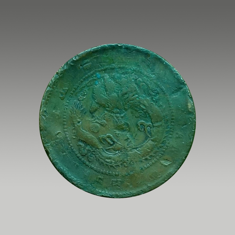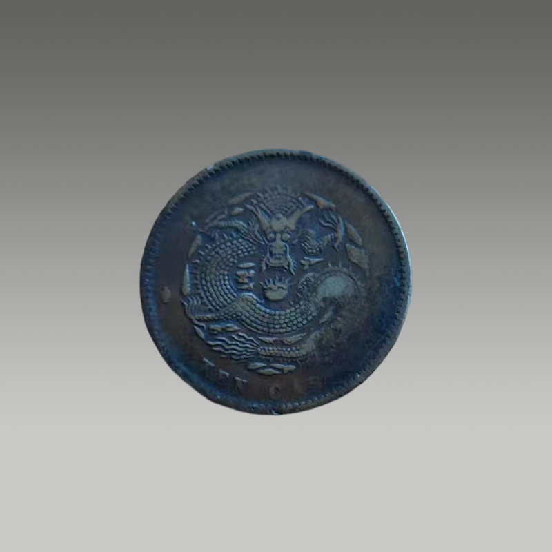 这枚铜元以坐龙纹为饰,龙纹矫健威严,包浆温润厚重,形制规整,兼具传统铸币工艺与东方祥瑞意趣
