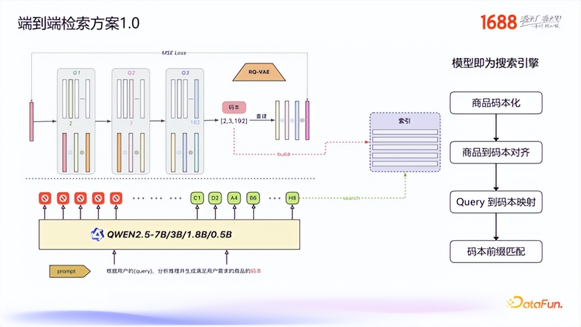 在传统电商搜索模式下,用户寻找商品的过程往往繁琐、低效,并伴随着信息过载问题。为了革新这一体验,1688 团队探索了从“人找货”到“货找人”的范式转变,致力于通过 AI 技术为用户提供一站式的智能找货、挑货解决方案。本文将详细拆解 1688 在生成式检索领域的两大核心技术方案:首先是基于级联范式的“AI 深度搜索 1.0 与 2.0”框架,该方案通过 Query 理解、向量召回、语义排序和总结四大模块,实现了对复杂用户意图的精准捕捉,并支持多轮会话与多模态搜索;其次是更具前瞻性的“端到端生成式检索”方案,该方案希望构建“模型即搜索引擎”的新范式,通过商品码本化、大模型对齐训练以及端到端联合优化,突破传统检索效果的上限。