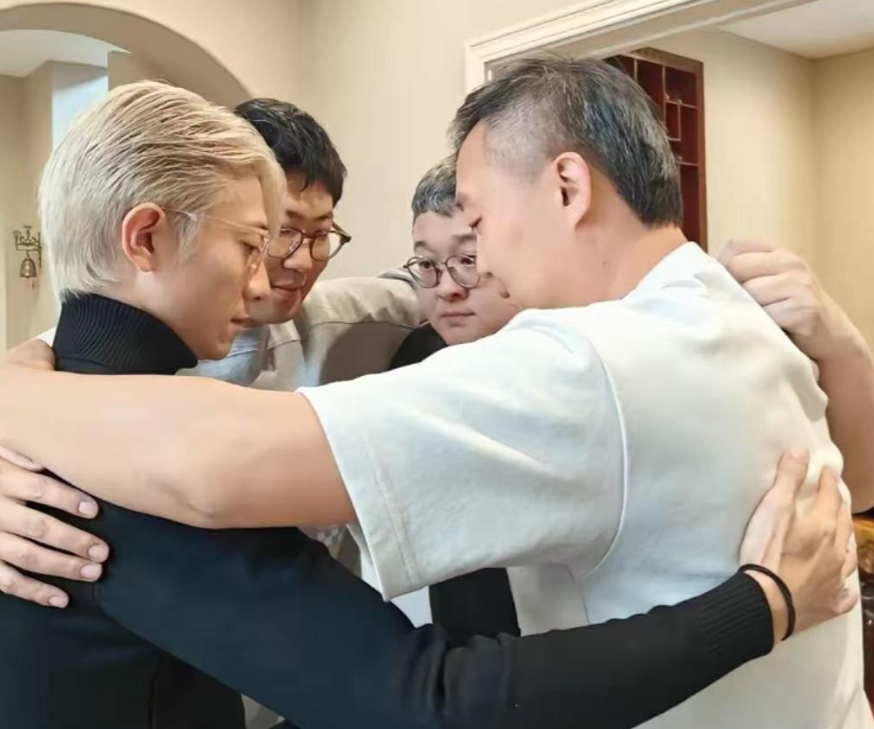 一起聚餐的发小们,个个吃得实在,身材略显敦实,不少人已经有了中年发福的迹象,气质也成熟稳重,一眼看去就是标准的成年模样。再看站在中间的张一山,依旧是一张标志性娃娃脸,身形清瘦,和身边的朋友们站在一起,反差感强到让人出戏。