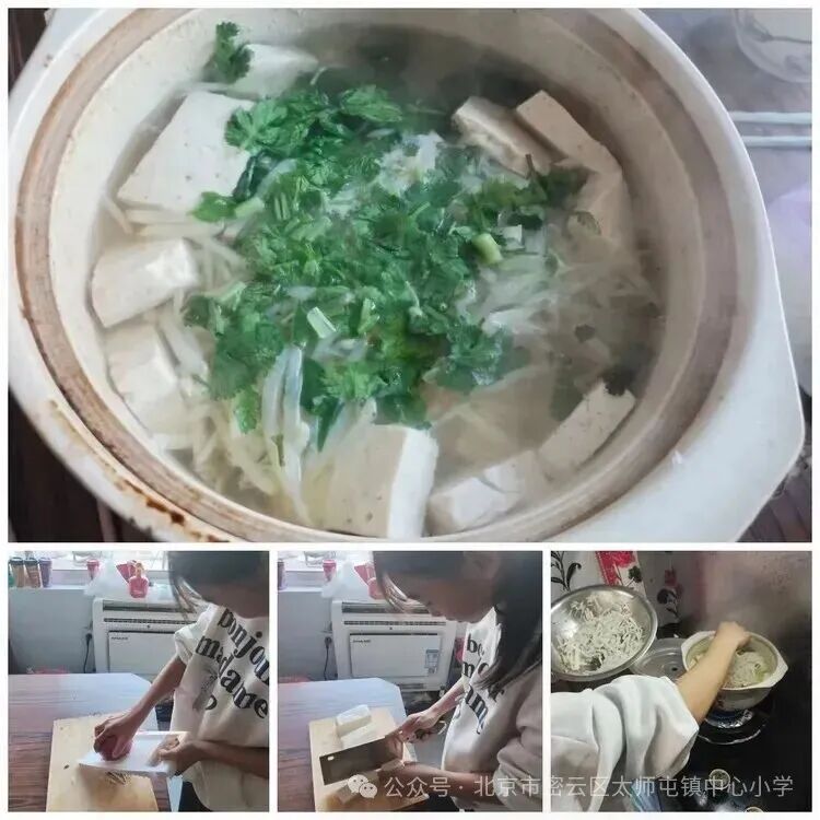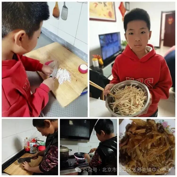 带着亲手收获的萝卜回到家,同学们摇身一变,成为了 “小小厨师”,用创意和巧手将劳动成果化作一道道美味佳肴。