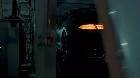 空气动力学的设计堪称点睛之笔。新车的前脸加装碳纤维前扰流板,配合扩大的下进气口,可将冷却气流提升30%;车尾伸缩式扰流板在时速250km时自动升起,提供额外下压力,日常行驶则贴合车身保持优雅。此外,车身覆盖件大面积采用碳纤维材质,连车顶都替换为碳纤结构,不仅减重还降低了重心,配合短前悬长轴距比例,运动姿态更显激进。轻量化是配置的核心关键词。宾利通过拆除后排座椅、换装碳纤维轻量化前排运动座椅,配合 Akrapovic 钛合金排气系统与空心锻造轮辋,将整备质量压至 2000kg 以内,较现款 GT Speed 减轻 459kg,簧下质量降低 15%。