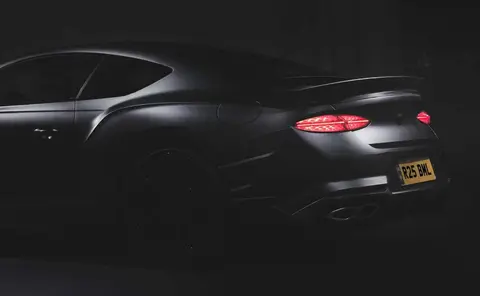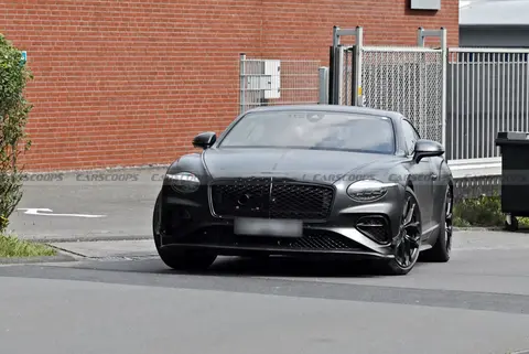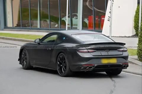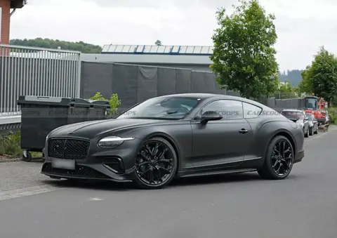 外观方面,根据发布的预告图,再结合此前曝光的谍照一起来了解,新车整体延续欧陆GT经典的2门4座的硬顶轮廓,但细节彻底向性能化倾斜。最直观的变化是全黑化处理:外后视镜外壳、21 英寸定制轮辋、六活塞刹车卡钳及隐藏式门把手均采用哑光黑涂层,配合碳纤维引擎盖的蜂窝状进气口,打破宾利传统的优雅格调,营造出强烈性能感的既视感。