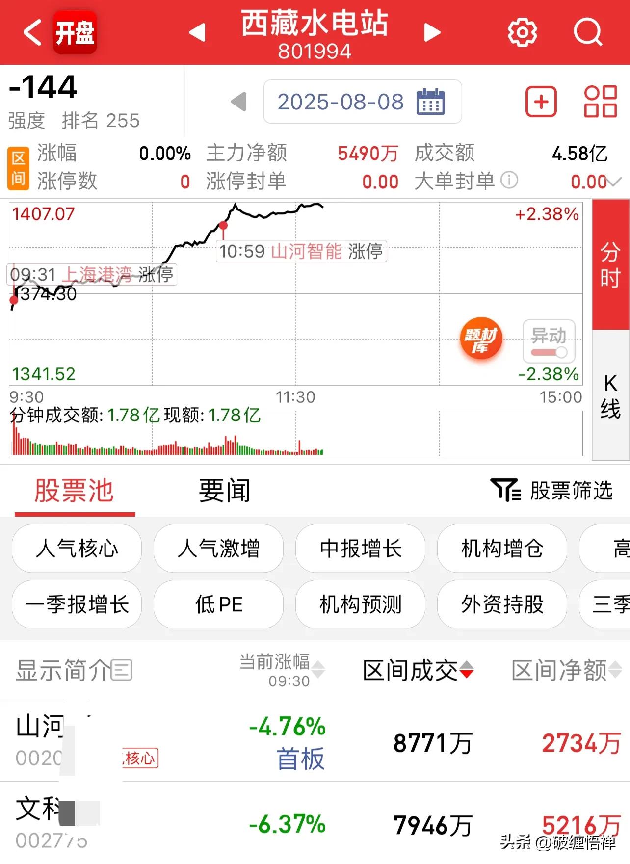 两个板块中选出的都有山河开盘直接买入,不炸板的话日内盈利15个点