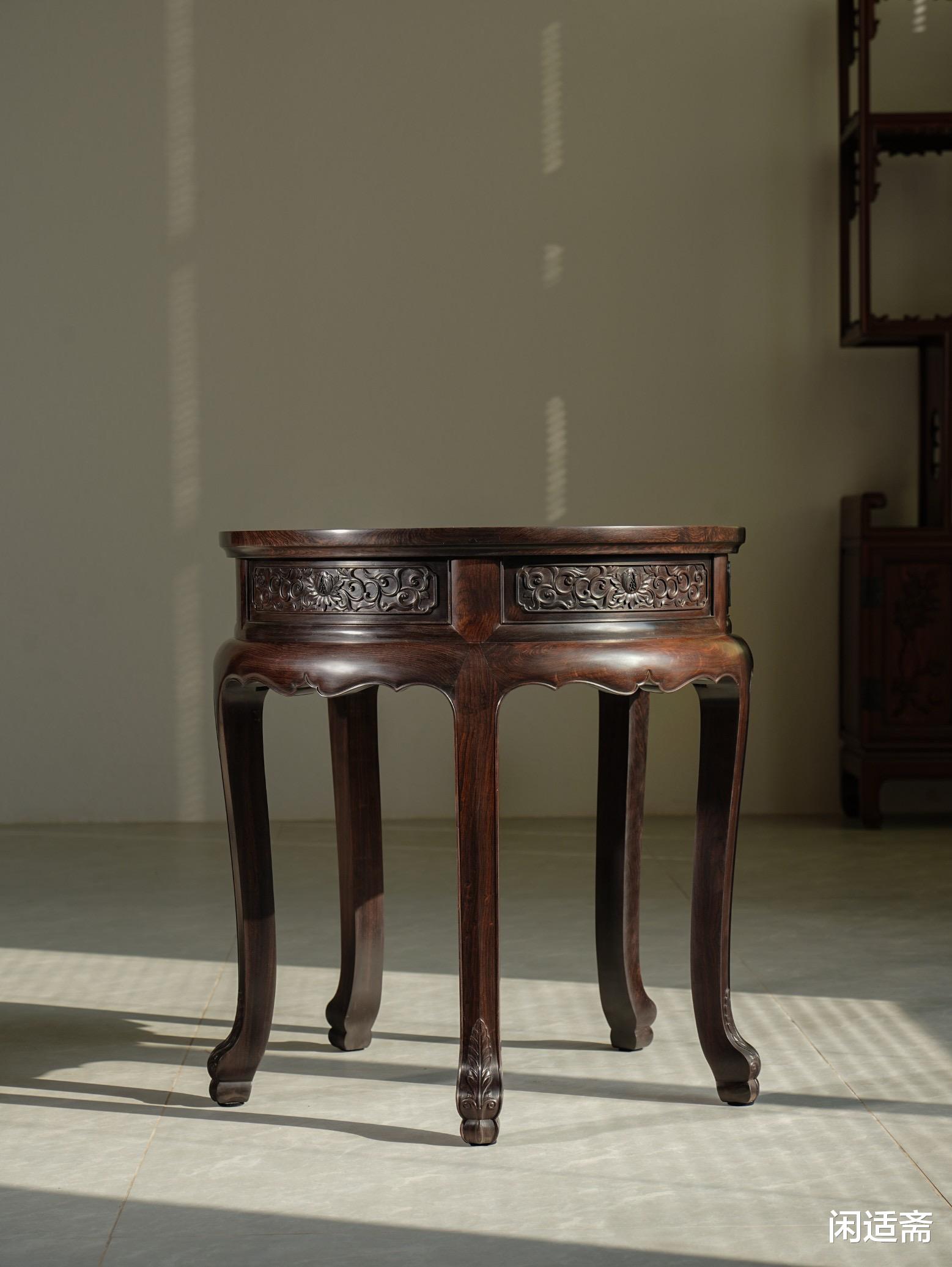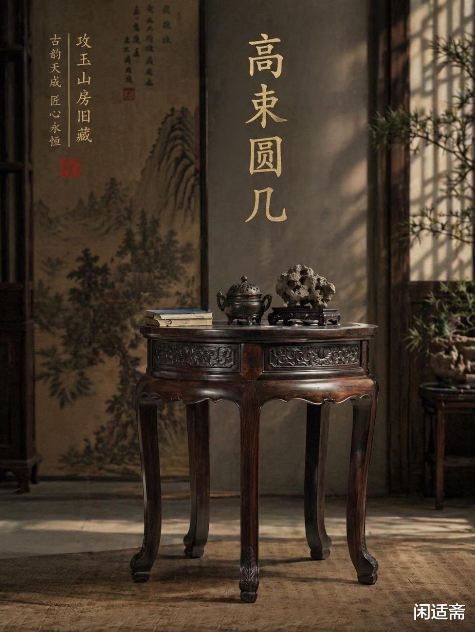 圆几多用于茶室、书房、客厅,摆放茶具、文玩、摆件,既承托器物,又点缀空间格调,承载着古人对简约雅致生活的追求与对器物美学的极致把控。
