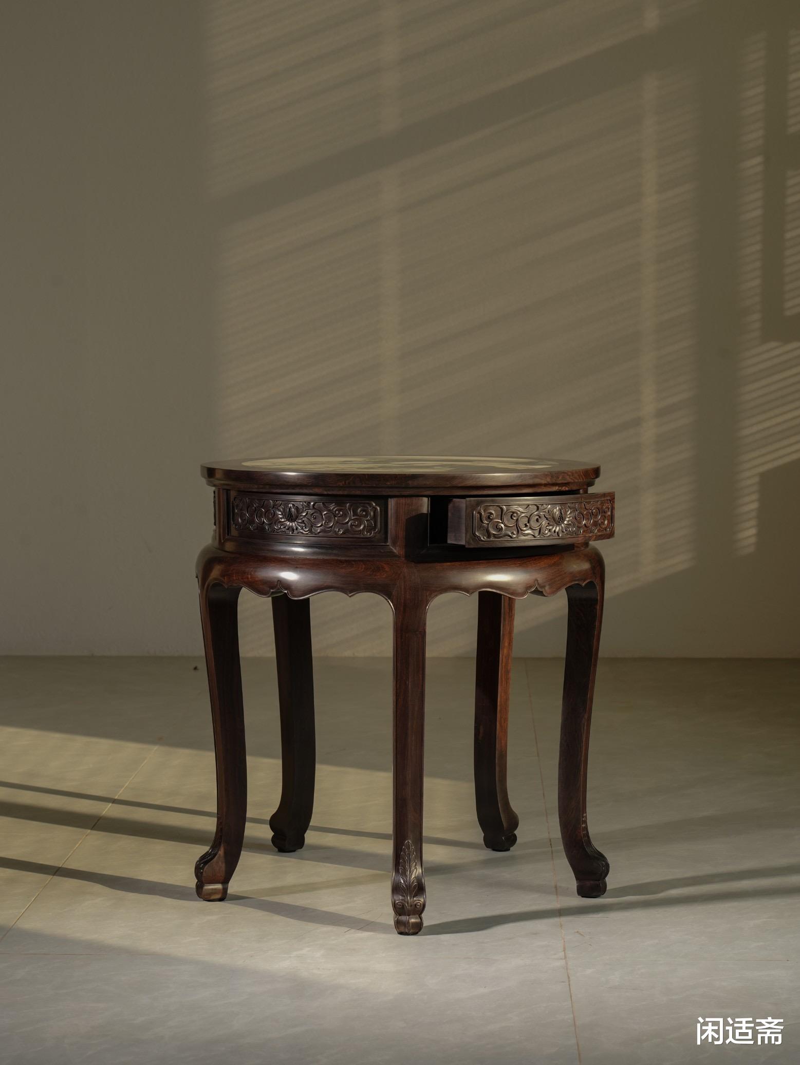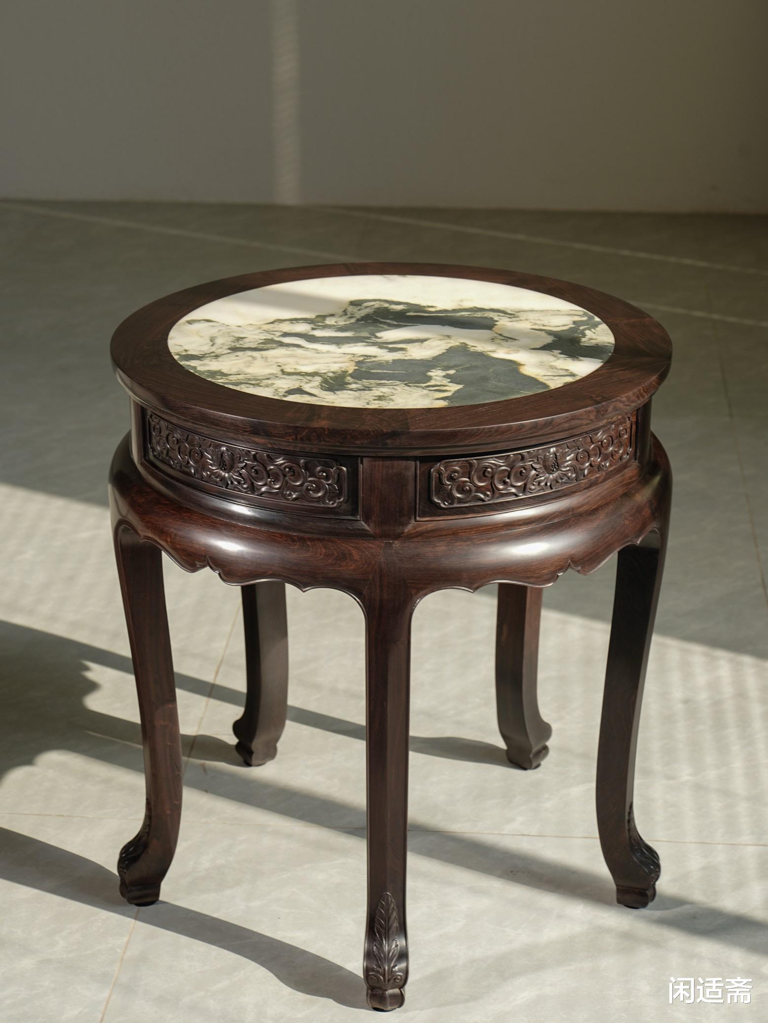 紫光檀镶嵌云石五足圆几