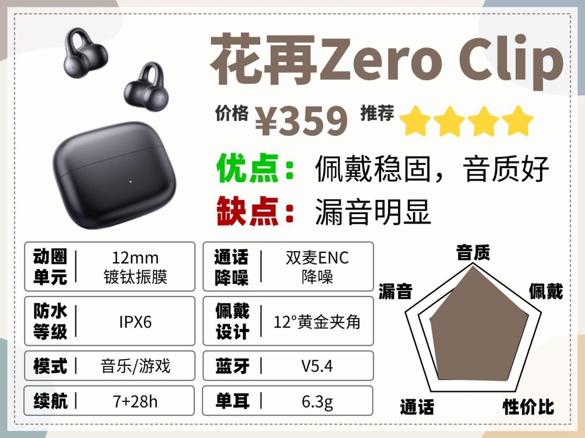 推荐理由:液态硅胶与360°全景空间音效,沉浸音质的耳夹耳机