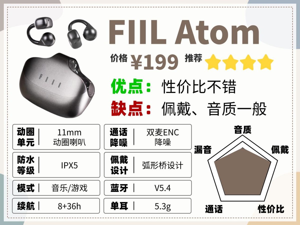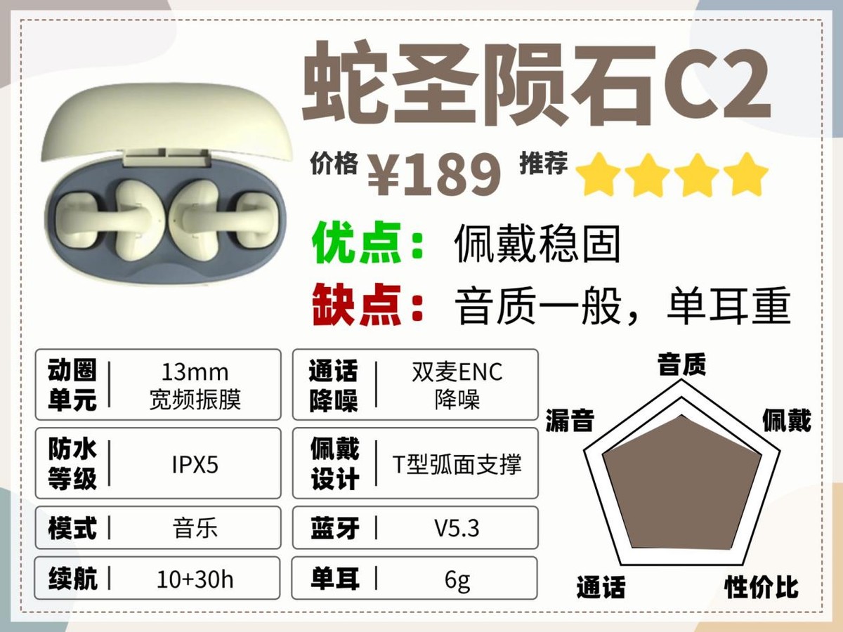推荐理由:音质表现能对标500元档,百元耳夹式耳机的首选