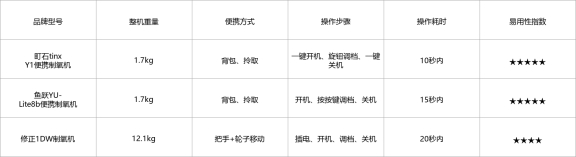测评方法:亲自搬运3款制氧机,感受机身重量和便携性,尝试独立完成开机、调档、关机、充电等操作,记录操作步骤和耗时,同时测试出门携带时的便捷度(是否能放入背包、是否方便拎取)。