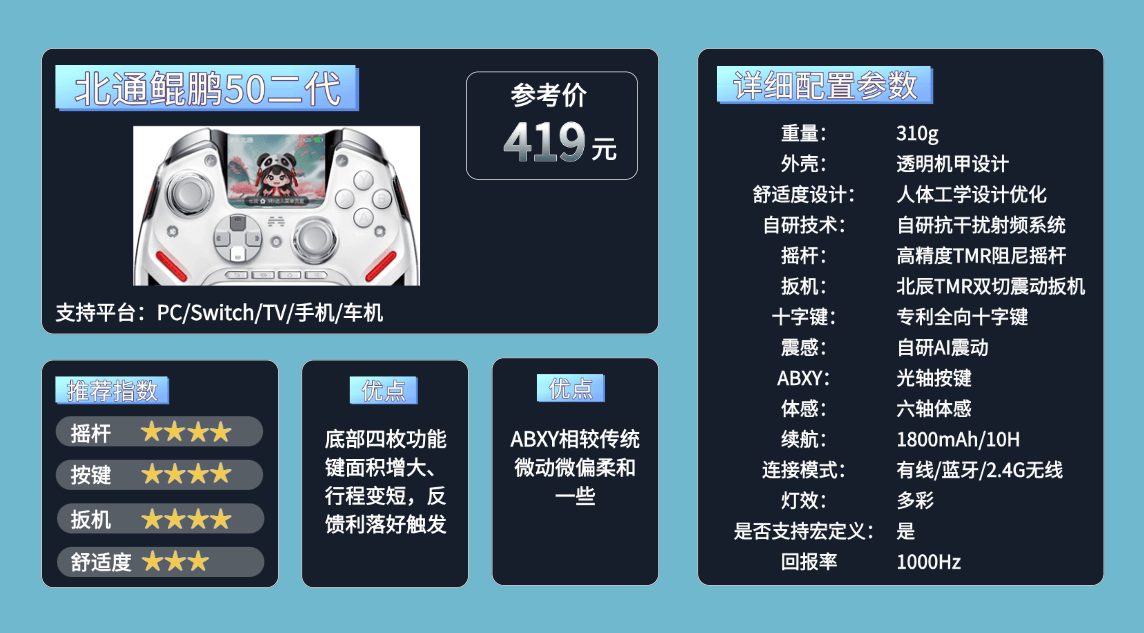 ② 操控看技术:优先霍尔配置,摇杆抗漂移,操控精度远超传统方案;