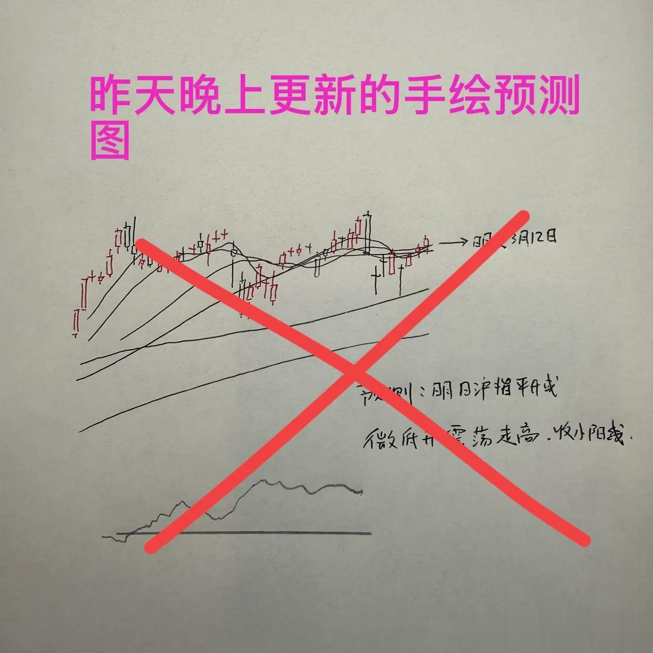 关于明天走势的手绘预测图,我将会在稍晚一点更新,大家保持关注。