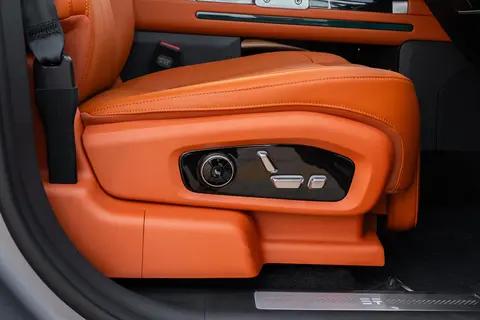 座椅配置方面,该车的座椅采用 Nappa 真皮材质打造,主副驾驶位均支持电动调节,包含前后移动、靠背角度、高低调节等功能,主驾座椅还具备腰部调节和记忆功能。前排座椅支持加热、通风和按摩功能,第二排座椅同样配备了加热、通风和按摩功能,能够为前后排乘客提供舒适的乘坐体验。座椅的设计符合人体工程学,21.2mm 的舒适层搭配 50D 高密度舒适性软海绵,回弹性和支撑性都表现不错,即使长时间乘坐也能有效缓解疲劳。此外,该车还配备了前排中央安全气囊、主驾驶位膝部气囊等被动安全配置,为驾乘人员的安全提供了全方位保障。