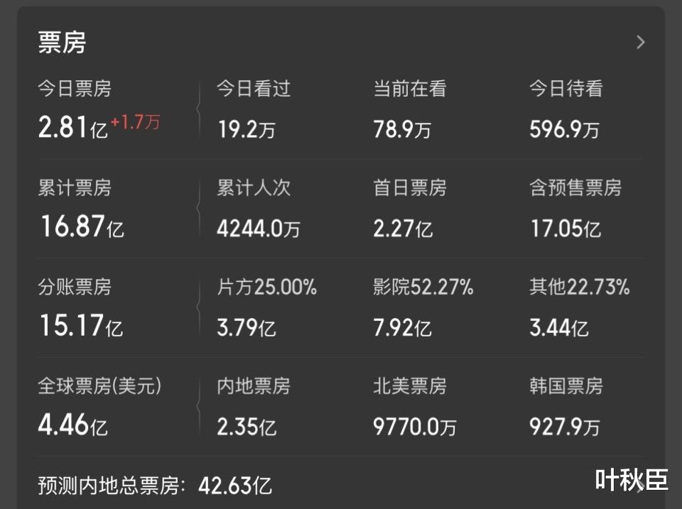 平台预测的最终票房也几乎是每日都在大幅度调整,现在已经达到42亿+。