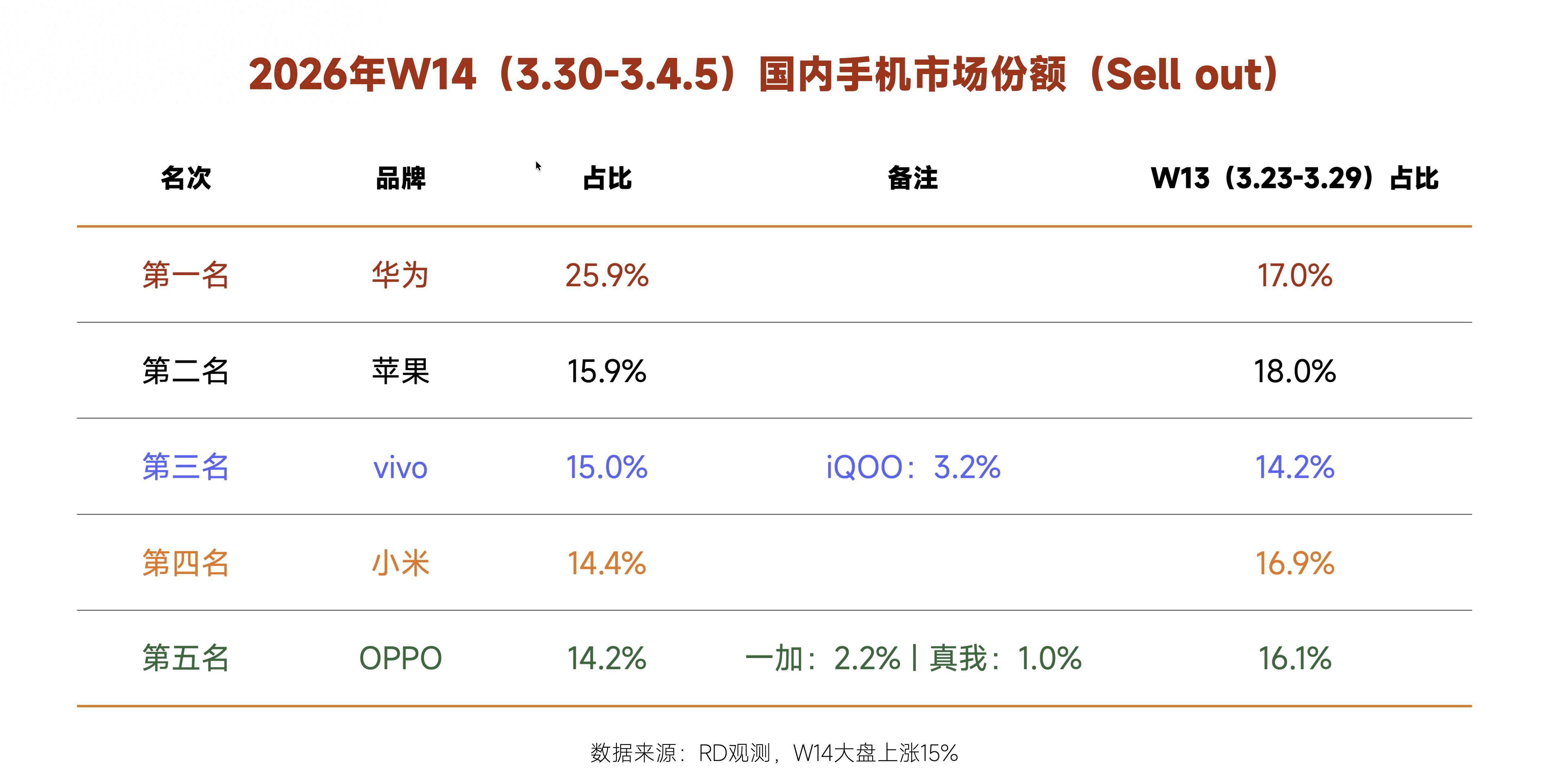 2026年春国内手机市场风云突变:华为反超苹果,vivo和小米激战正酣