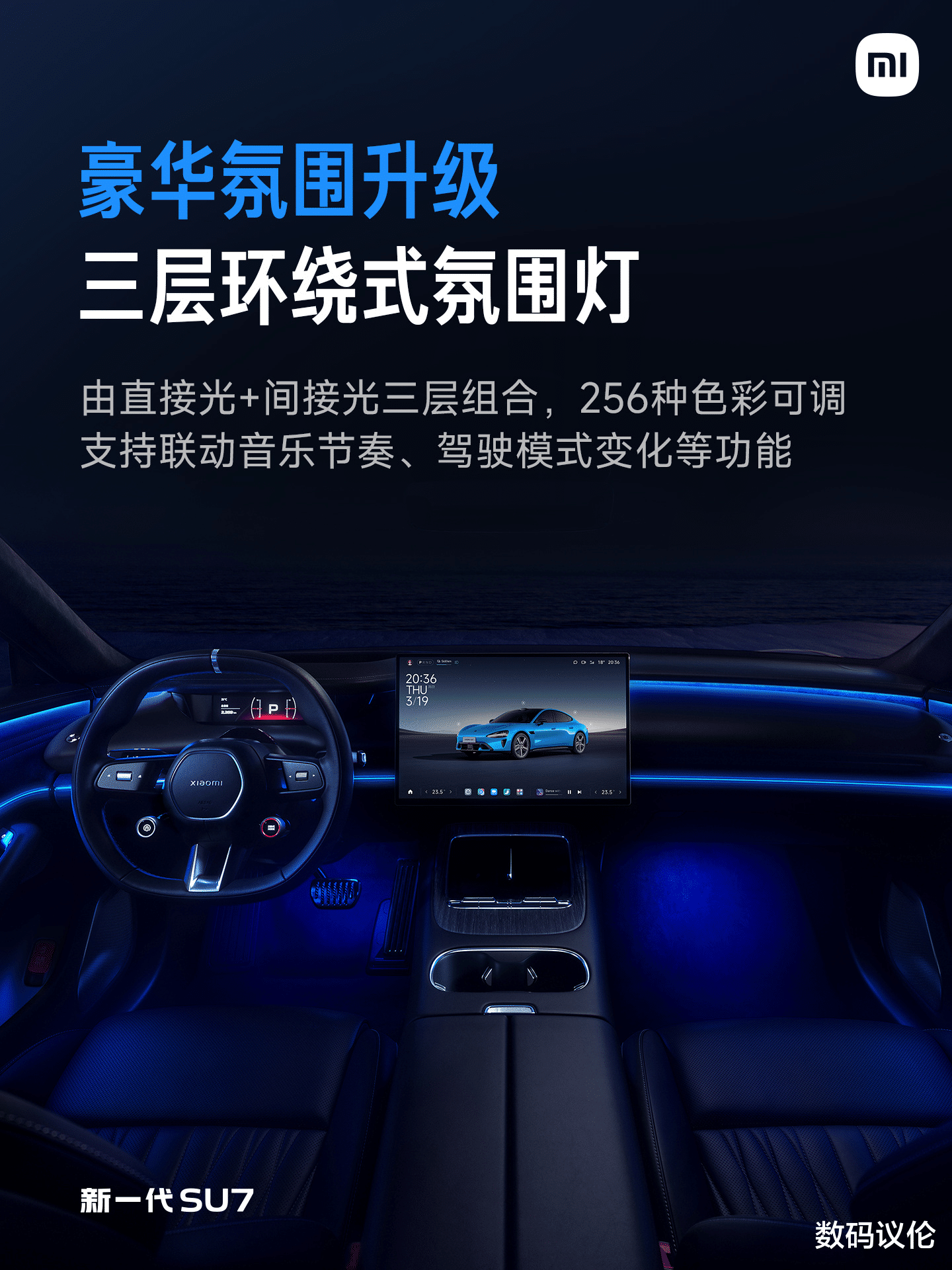 氛围灯也是让我觉得新一代SU7在细节上更豪车的点。三层环绕式,从仪表台延伸至后排,直接光勾勒轮廓+间接光营造氛围,还能根据音乐节奏变化联动。