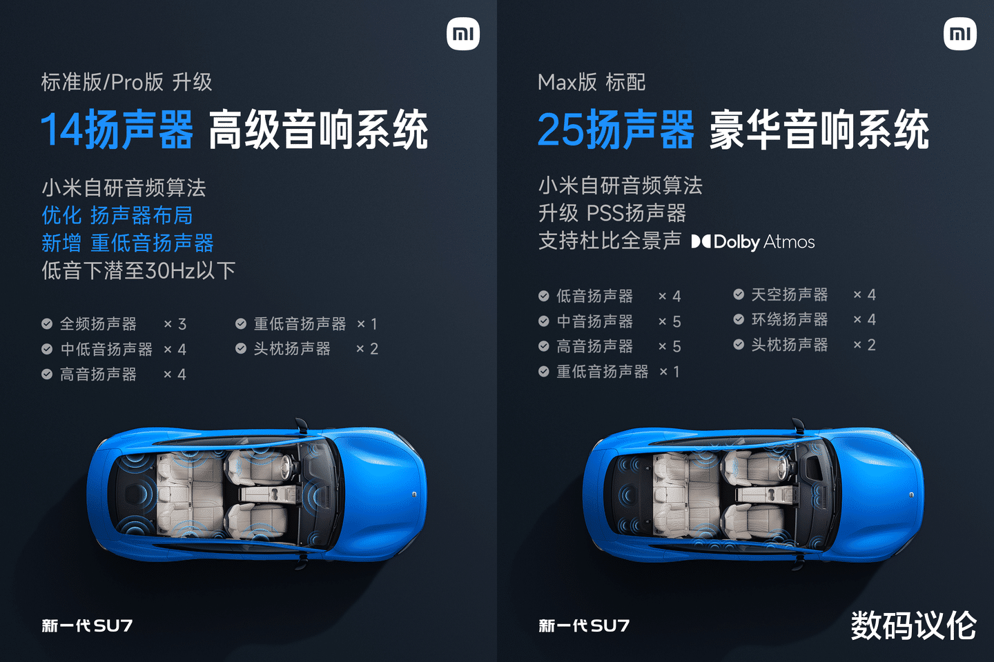 音箱也做了升级,标准和Pro都标配14扬声器,Max是25扬声器,标准版首销直接送25扬声器。