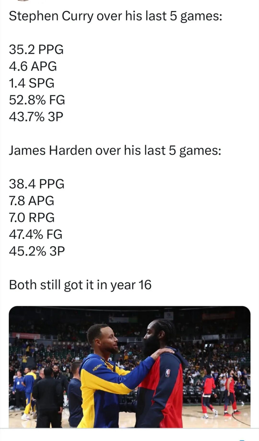 剩下就让库里承担了所有(这一点和快船的哈登一模一样,09届双雄!):近五场比赛库里场均35.2分,4.6助攻1.4断。投篮命中率52.8%,三分命中率43.7%