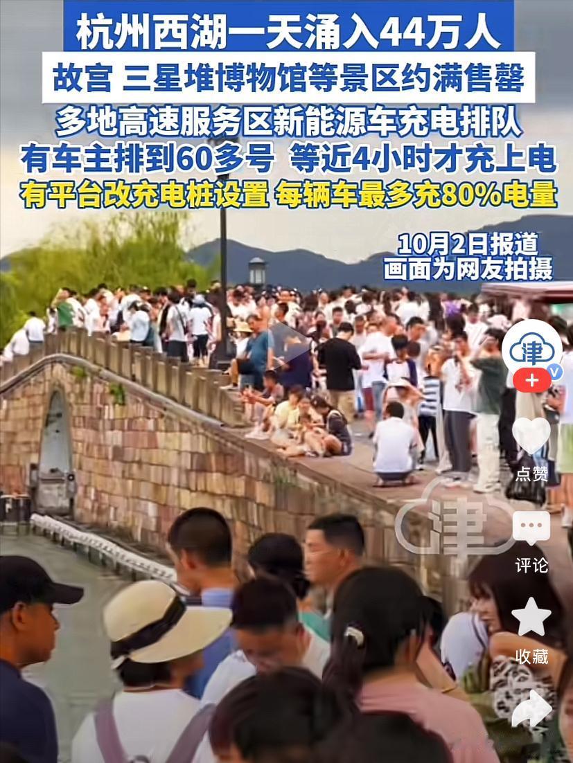 每年的五一、十一假期,西湖都是热门旅游景点,今年的西湖更是人满为患,十月一日当天,西湖涌入游客44.63万人。