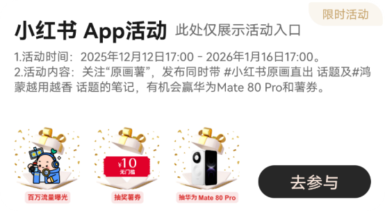 除了日常签到福利,还有芒果TV、小红书、WPS等限时活动可以冲!参与活动不仅能直接领会员,进入芒果TV App参加“礼上加礼”活动,还能抽华为智慧屏,奖品丰厚到让人眼花缭乱。
