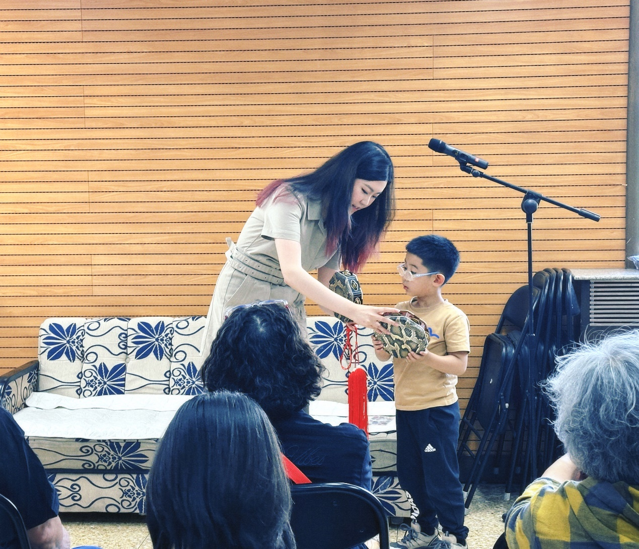 在北京曲剧乐器工坊环节,来自北京市曲剧团的优秀青年演员不仅现场演唱了岔曲《风雨归舟》,还向戏迷普及八角鼓的历史由来和使用方法。大家纷纷上手尝试,一时间,排练厅里响起了此起彼伏的鼓声,简直比过年还热闹!