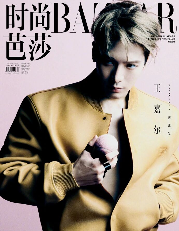 于聪这组大片的杀招,从不是靠夸张造型博眼球,而是 “以大胆风格当放大器”。他敢用粉调衬朱一龙的柔,敢用几何衬王鹤棣的锐,敢用花饰衬王嘉尔的野 —— 所有视觉设计,都是为了让人物的本味更突出,而非让造型盖过人物本身。