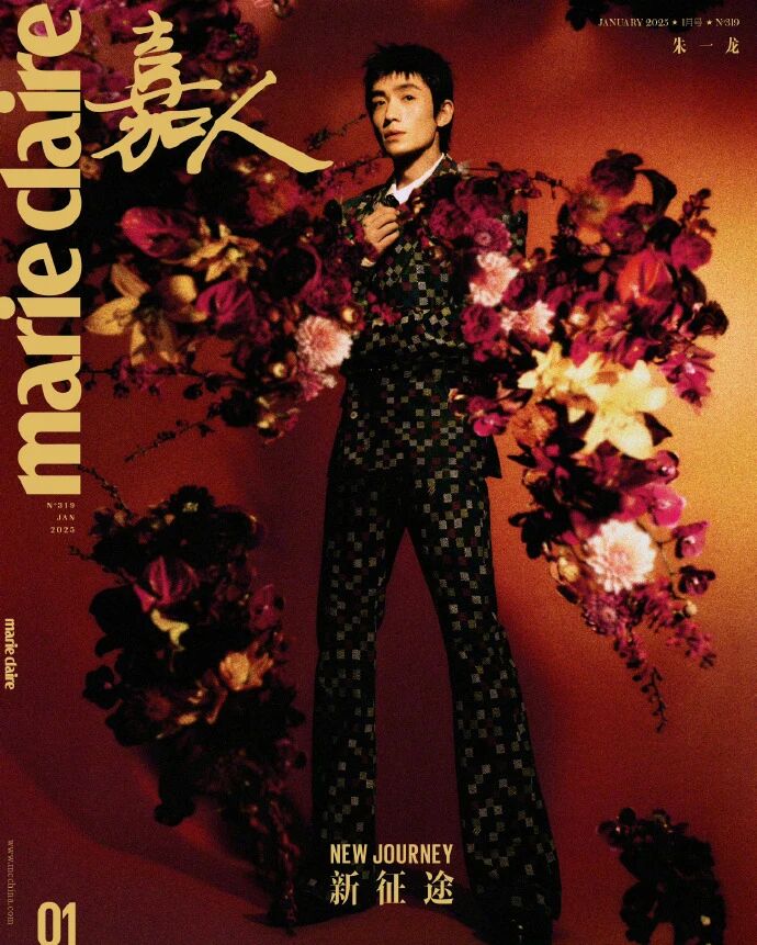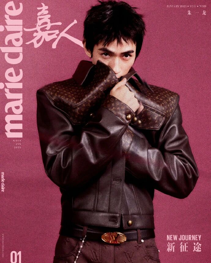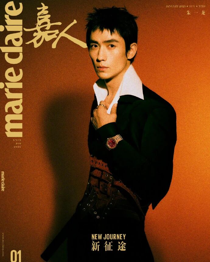 :短款黑装衬出他的利落肩线,手抵额角的姿态带着漫不经心的酷,背景里的 “NEW YEAR” 字样撞上他的冷感,镜头的锋利构图把 “小身板大气场” 拍得透彻,利落里裹着藏不住的锐度;朱一龙的柔锐反差