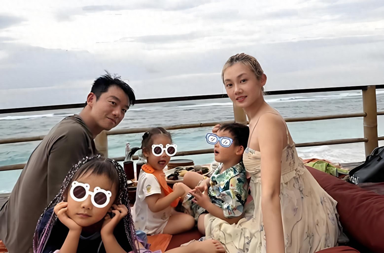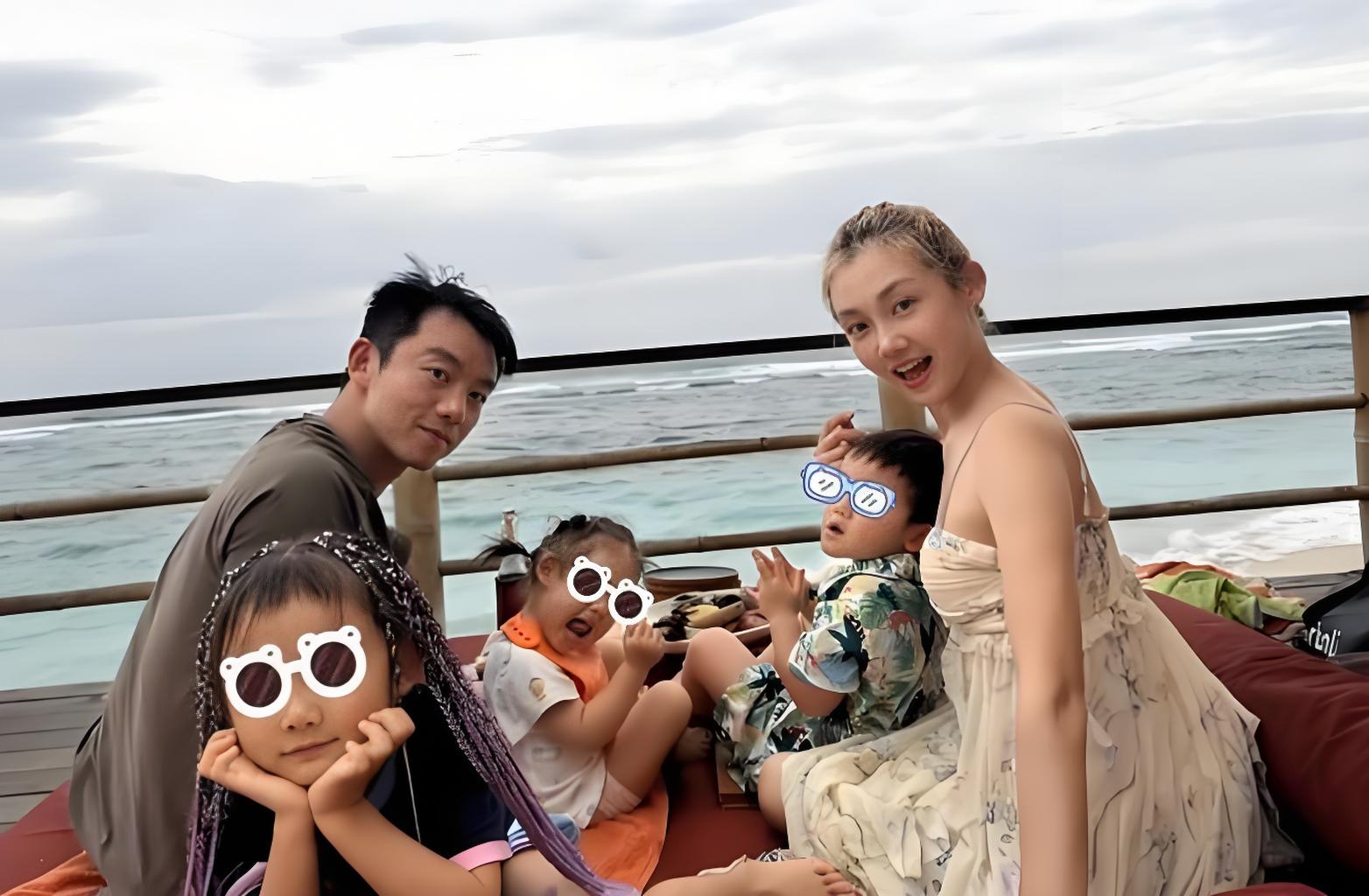 全家福照片中,郑恺、苗苗和三个孩子在海边露台甜蜜合影。背后是辽阔无垠的海面,天空中云朵悠悠,整个场景营造出一种轻松惬意的氛围,仿佛时间都在此刻静止,只为定格这一家人的幸福瞬间。