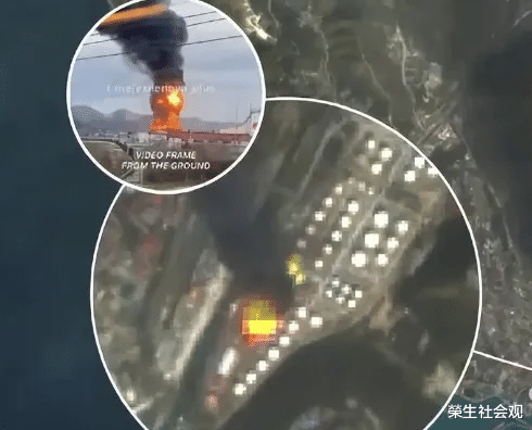 其中1个容量为20000吨的汽油罐也在燃烧,鹅方只能看着大火燃烧,似乎没有能力扑灭;而大火还在逼近另一个容量为20000吨的油罐。
