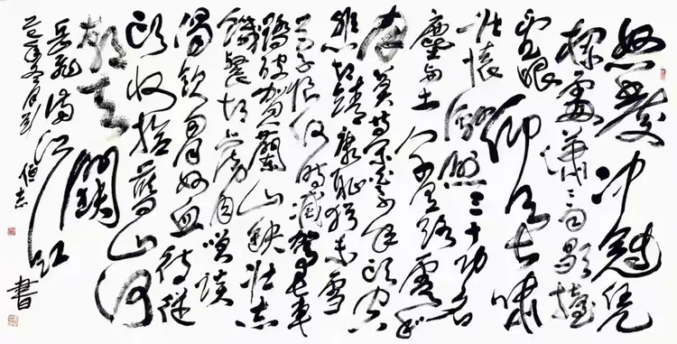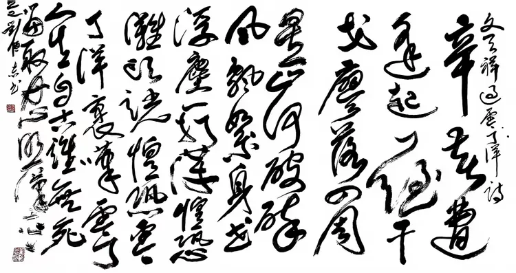 先生之书,如骏马驰原,开疆拓宇,破古出新;其墨若长风卷岳,气势磅礴,卓立巅峰。于点画间藏天地气象,于尺幅中显家国襟怀,熔古铸今,自成高格。