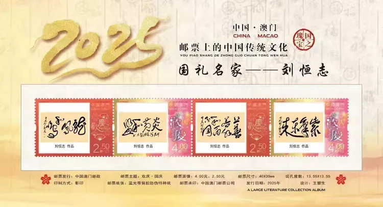 2025年分别发行:邮票上的中国传统文化《国礼艺术名家——刘恒志》邮票、《国之瑰宝》邮票、《联合国成立80周年》邮票、《巳巳如意》邮票。