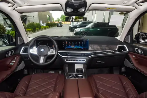 外观是车辆给人的直观印象,2025 款宝马 X5 曜夜套装延续了宝马经典的双肾造型进气格栅,独特的设计让车辆具有很高的辨识度,在众多车型中能轻易被认出。车窗边框、车顶行李架等部位采用了黑化处理的亮黑色曜夜套件,让整车的运动风格更加突出,符合不少消费者对运动感车型的偏好。另外,顶配的 xDrive40Li 尊享型 M 运动曜夜套装还为消费者提供了免费选装磨砂纯灰色车漆的机会,对于追求个性化外观的消费者来说,这一设计增加了车型的吸引力。我曾在展厅看到过这款车,亮黑色曜夜套件搭配车身,视觉上很有冲击力,磨砂纯灰色车漆则显得更为独特、有质感。