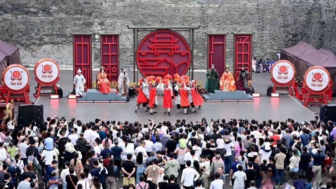 长假每天中午 11 点 20 分,古城大北门准点开演,人挤人全是来看的。先看刘关张从三义街走出来,跟旁边游客拱手打招呼,特别亲切;走到空场,一群拿桃枝的舞女跳完舞,三人 “扑通” 跪地 ——“桃园三结义” 来了!“不求同年同月同日生,但愿同年同月同日死”,这话一喊,周围游客都忍不住鼓掌。