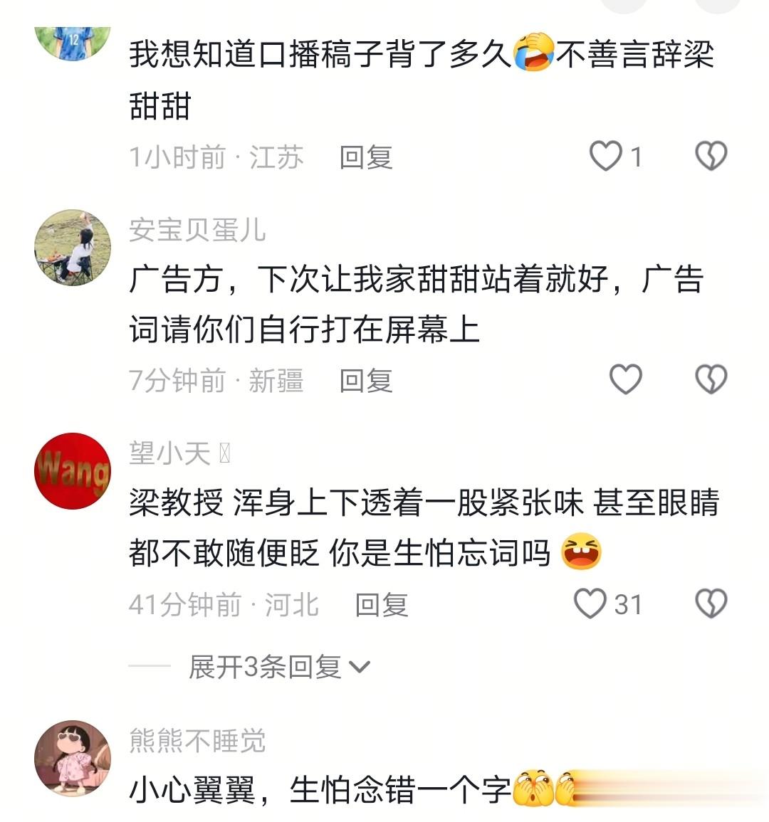 上次拍领克的时候,是一句台词也没有,大家说那个短片适合梁靖崑。今天一下子说了那么多,确实能感觉到他浑身上下透着紧张,眼睛都不敢眨一下,就怕忘了词,有网友说:“甜甜小心翼翼,生怕念错一个字。”