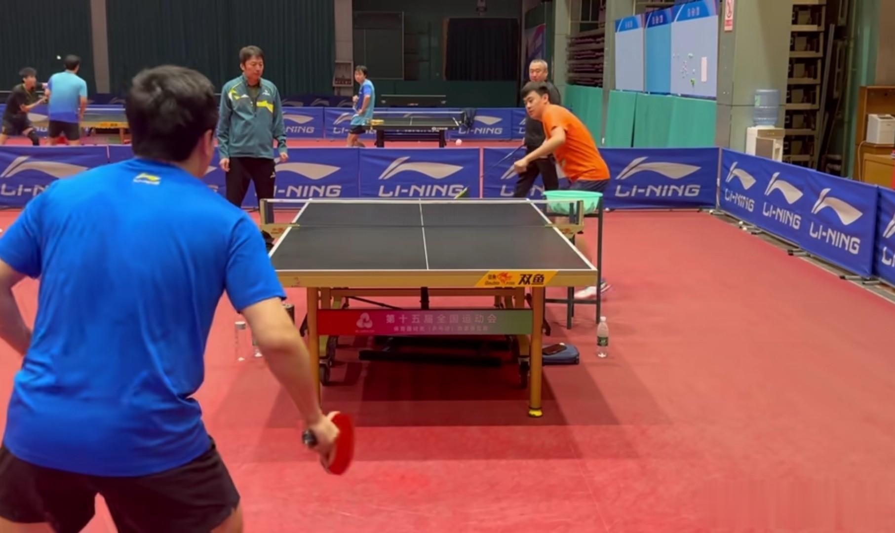 胡东申是打削球的,训练时胡东申会陪着大胖练接发球,看到有个训练片段,梁靖崑和胡东申一起打起了削球,梁靖崑也削了好几板,比赛的时候会不会突然给对手削过去。