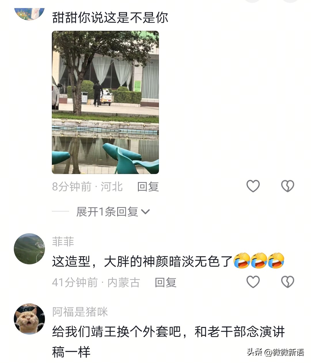 这次梁靖崑的妆造,大家都吐槽了一下,有网友说:“这造型,大胖的颜值都变得暗淡无色了。”不过确实穿这件外显得成熟,真的有点像老干部念演讲稿的即视感,下次得换个妆造师了。