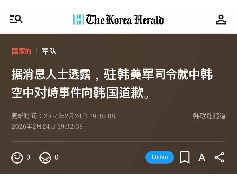 第二个例子:韩国抗议,美国道歉?这个例子更罕见。