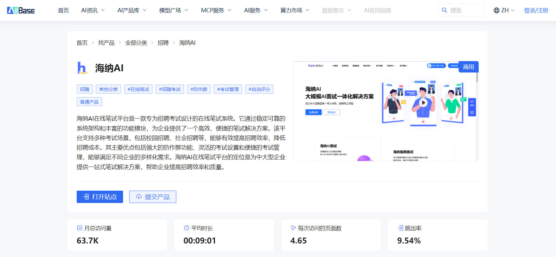 月总访问量6.37万次——这个数字不仅是单纯的流量统计,它代表了超过六万名用户对高效、智能招聘解决方案的迫切需求。每一次点击,都是对海纳AI产品价值的探索;每一次访问,都是一份对优化人才筛选流程能力的信任。