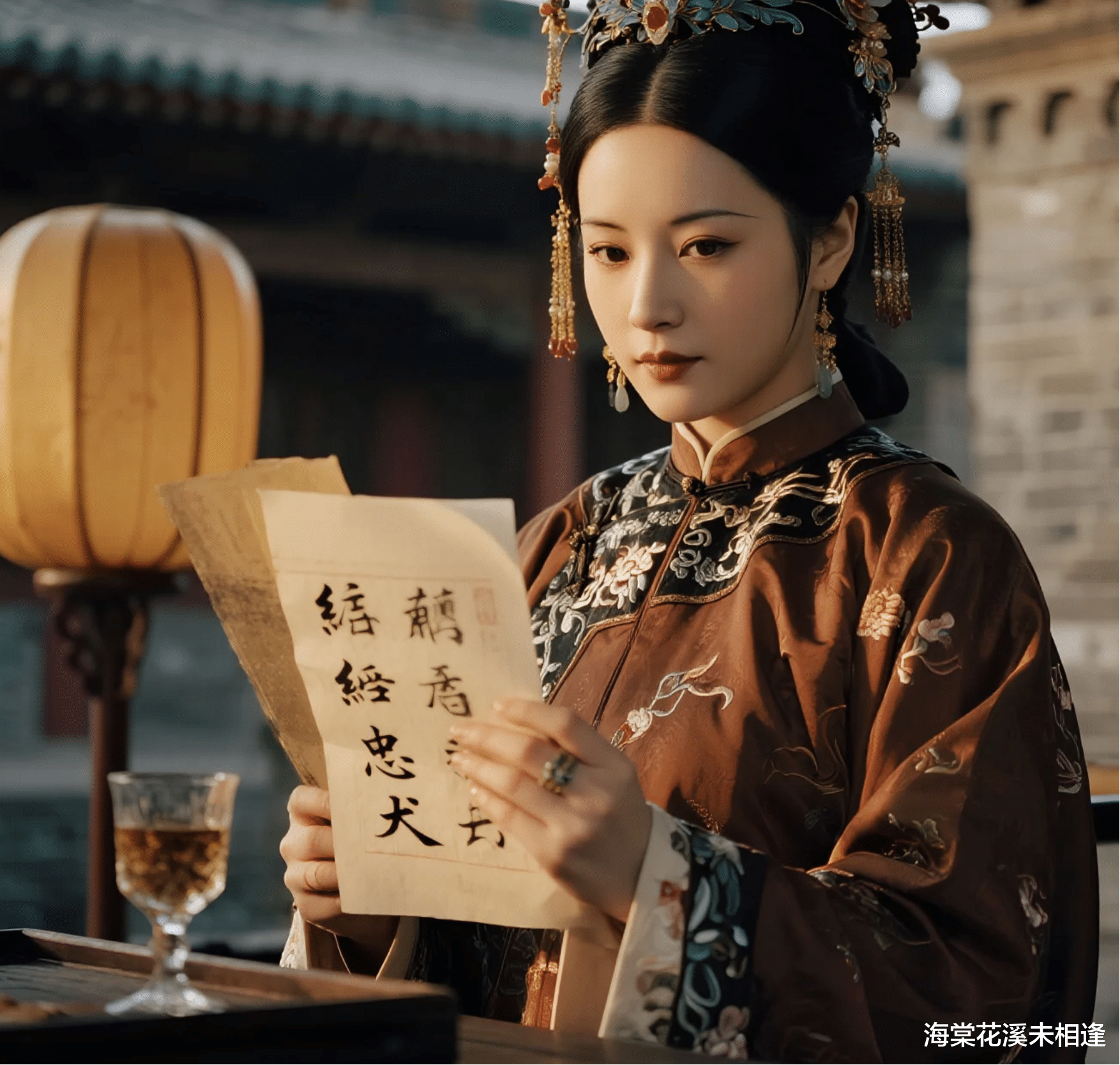 后来我们沿着宫墙根儿往宫外走,墙头上的凌霄花垂下来,扫着他的发顶,他声音轻得像落在花瓣上的风。