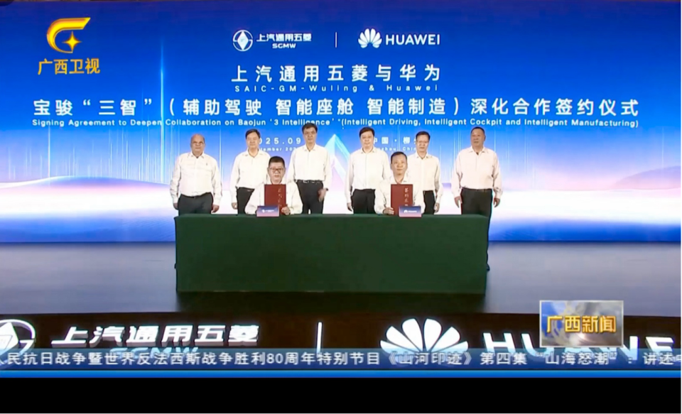 9月6日,上汽通用五菱汽车股份有限公司与华为技术有限公司在柳州举行宝骏「三智」深化合作签约仪式,全面升级战略合作伙伴关系。双方将在辅助驾驶、智能座舱、智能制造三方面深化合作。