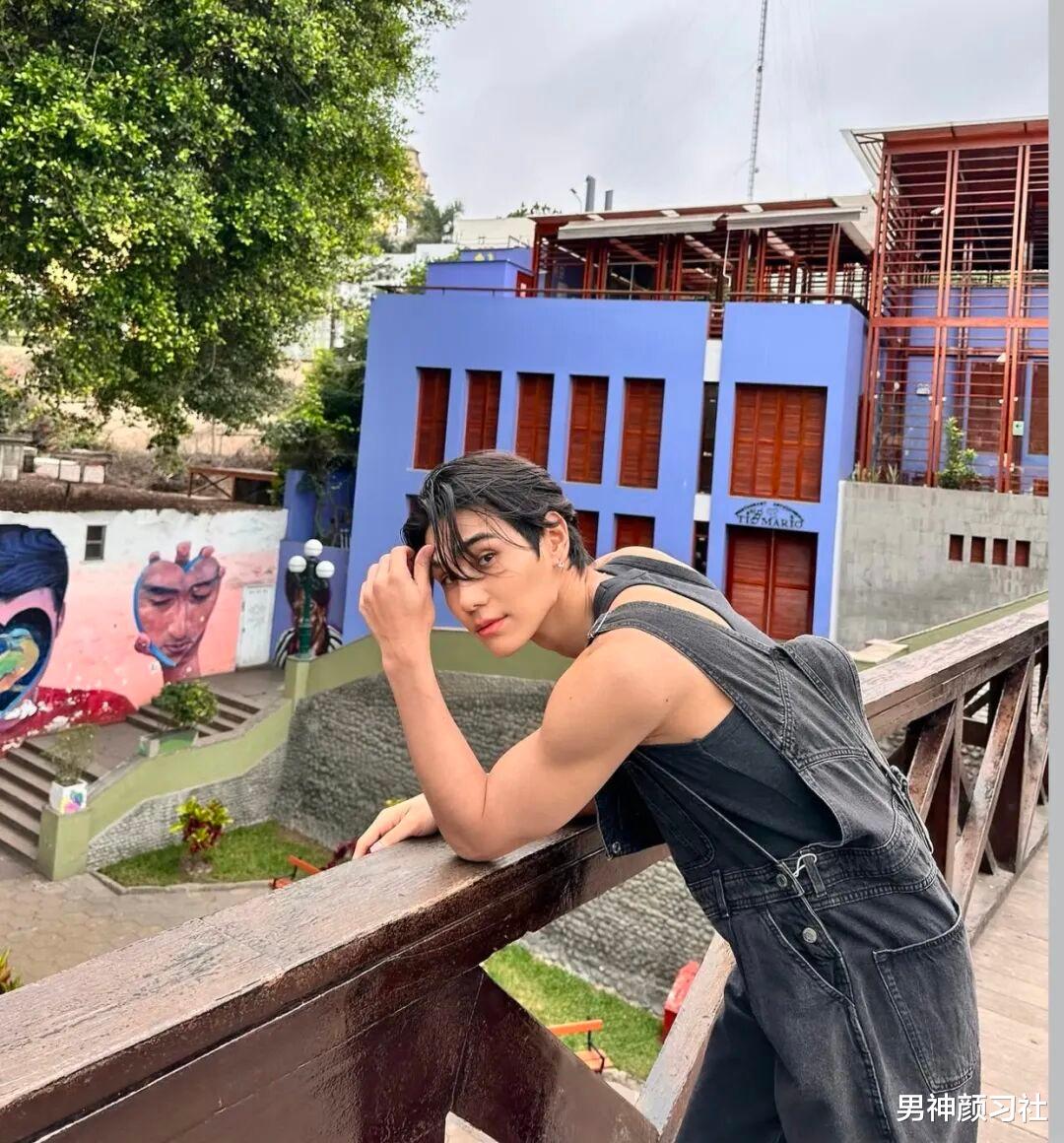 把背带裤换成是基础款牛仔短裤,则是人夫感很重的样子。这身其实在男生身上还挺加分的,只要你的气质过得去,头发稍微打理一下,就会让整个人的look变得更有型。