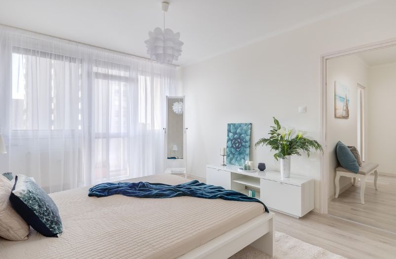 这种色彩的妙处,在于它能与光温柔共处。想象一下,南向客厅里,午后的阳光有时过于直白甚至有些焦躁。这时,一面雾松绿的墙面,或者一幅同色系的亚麻挂帘,便能成为绝佳的“光线调和剂”。它不会吞噬光亮,而是像一层薄纱,让光线的锋芒变得柔和、缓慢下来,在墙壁或地板上投下静谧的、时间流淌般的影子。这便是装饰中的“呼吸原则”:空间需要留白,色彩也需要喘息。雾松绿自带灰调,便是色彩的留白,它为视觉和情绪都预留了舒缓的余地。