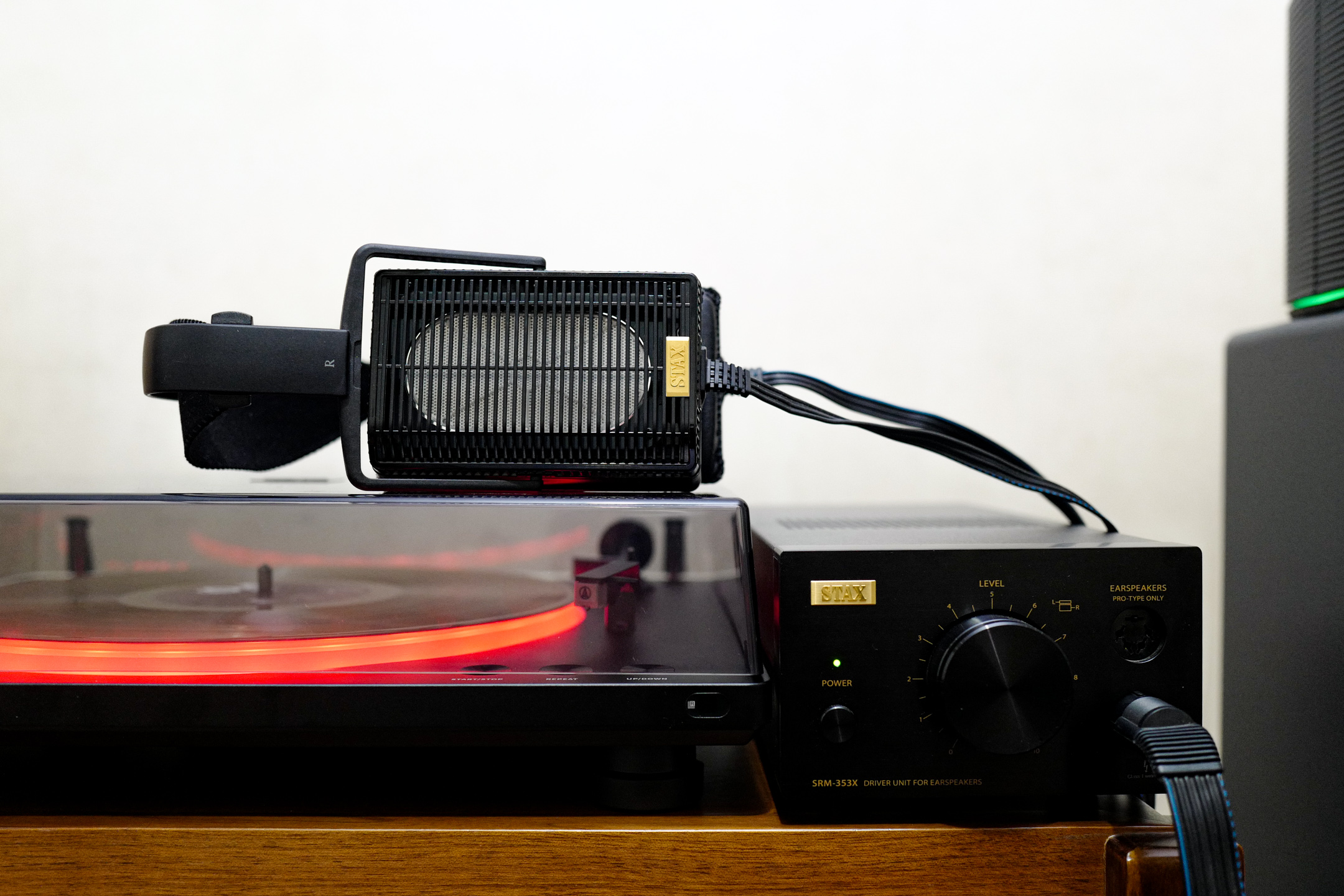 后来考虑到黑胶的音质特点,很容易和静电耳机系统相搭调,抱出了有段时间没玩的STAX静电耳机系统,无出意外的,依旧听到了非常好的像真度和声音真实感,静电耳机系统搭配不好容易质感虚,不够“肉头,底盘不够稳,高频可能发飘的情况,黑胶音源确实更容易拿捏住。