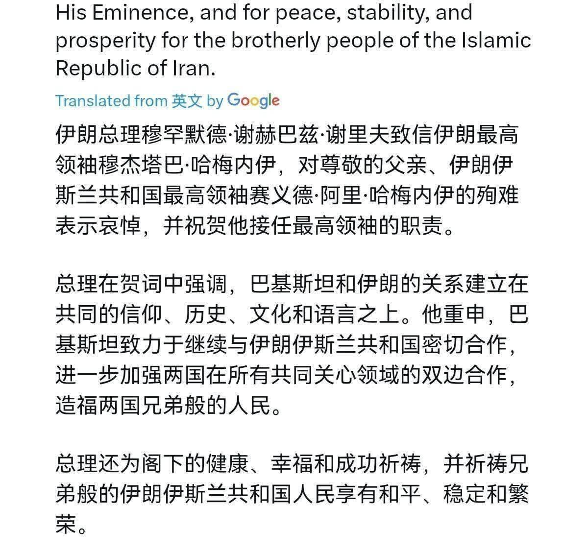 仅仅一天后,巴基斯坦总理谢里夫便向德黑兰发去信函,对老哈梅内伊的殉难表示哀悼,并祝贺穆杰塔巴承担最高领袖职责。谢里夫在信中强调,巴伊关系以共同的信仰、历史、文化和语言为基础,巴方承诺继续与伊朗密切合作,造福两国人民。