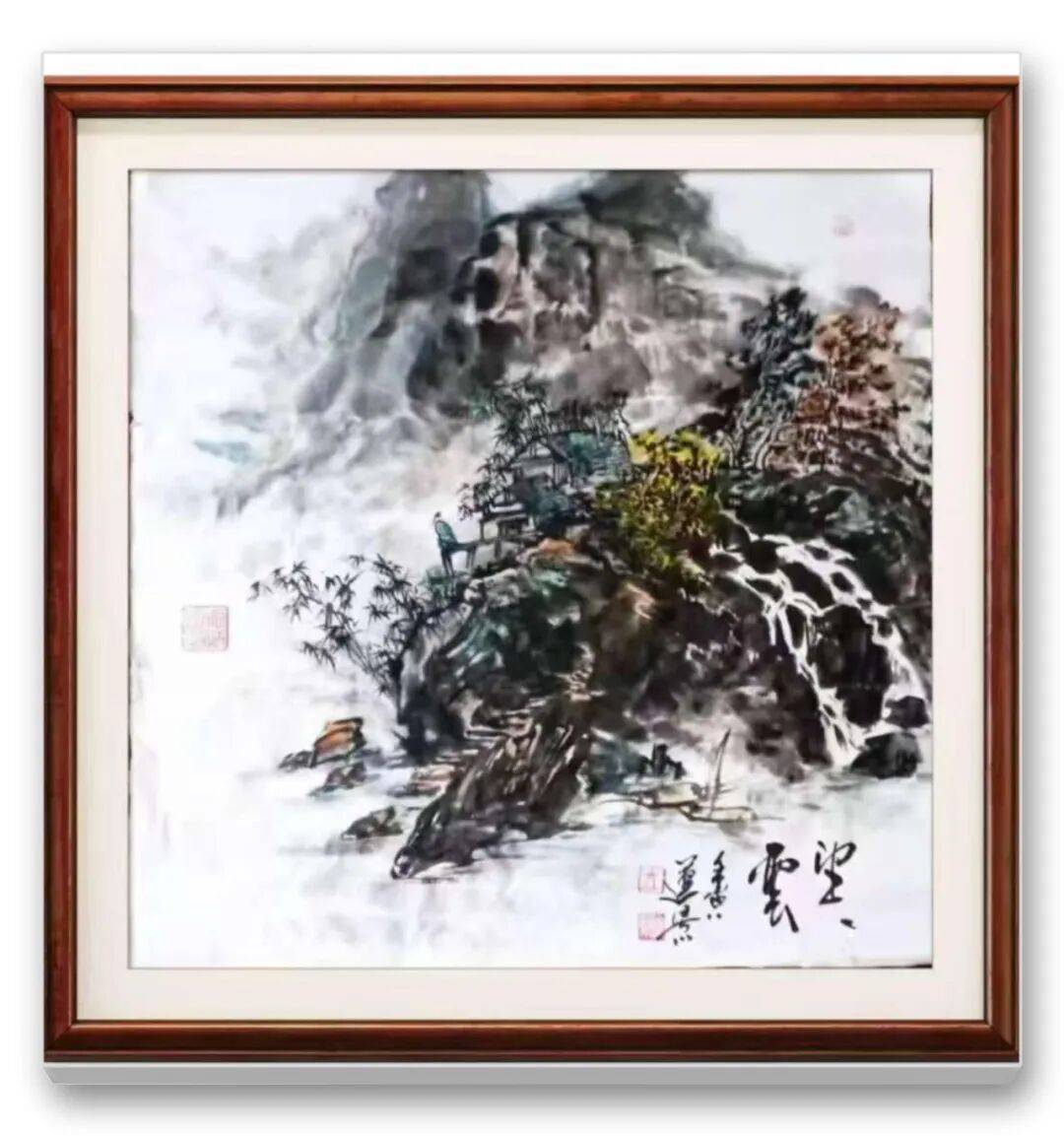 王运景老师的山水画不仅注重外在形态的展现,更注重内在意境的营造,追求“景中有情、情中有景”的艺术境界。其江南烟雨图便以细腻的笔墨营造出悠远朦胧的江南意境,画面以淡墨渲染远山近水,云雾缭绕,烟雨迷蒙,仿佛一幅朦胧的水墨画。江南的小桥流水、亭台楼阁点缀其间,线条柔和,笔墨细腻,尽显江南的温婉秀美。水面上漂浮的一叶扁舟,更增添了画面的悠远意境,传递出一种悠然自得、超然物外的精神状态。整幅作品色调淡雅,意境悠远,让观者仿佛置身于江南烟雨之中,感受到那份宁静与惬意。这种对意境的精准营造,正是王运景老师山水画的魅力所在,他通过笔墨将自然山水与主观情感完美融合,让山水画成为传递精神意蕴的载体,引导观者在山水意境中实现精神的放松与升华。